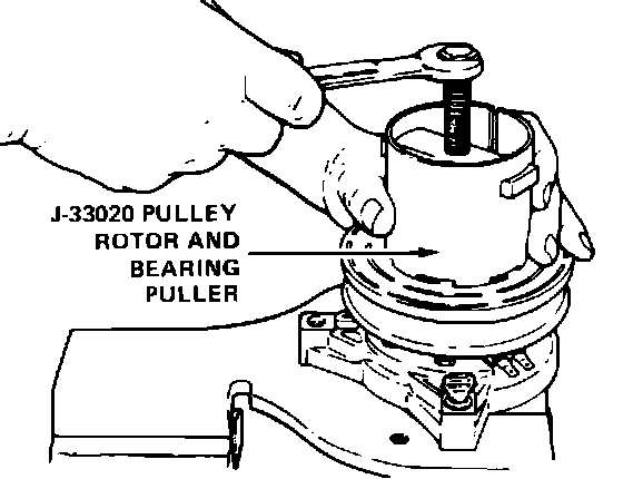 4. Hold puller in place and tighten puller screw against puller guide to remove pulley rotor and bearing assembly.