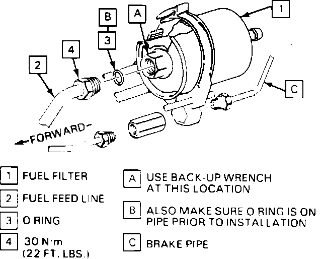 NOTE: Use a back-up wrench to prevent filter, "O" ring, or fuel line damage.