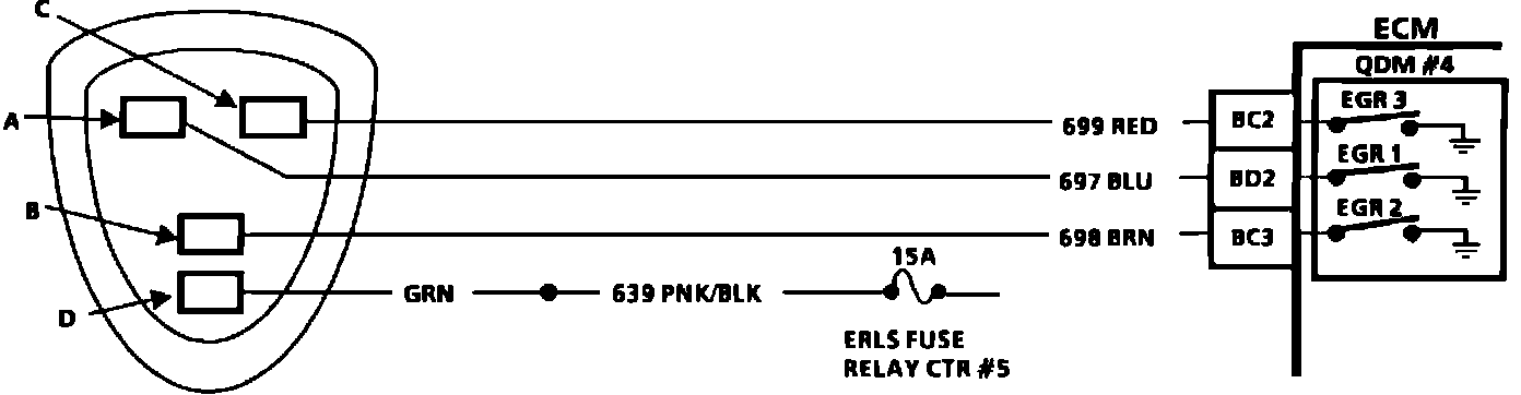 Disconnect the four wire connector at the EGR, and then install a jumper wire, with a fuse, from the battery to terminal D of the EGR.