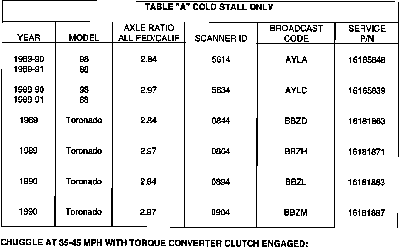 Some owners of 1989-90 Ninety Eights, Toronado/Trofeo, and 1989-91 Eighty Eight models equipped with the 3800 (VIN C) Engine may exhibit one or both of the conditions below. These two conditions are independent of each other, yet it may be possible for both conditions to exist on one vehicle.