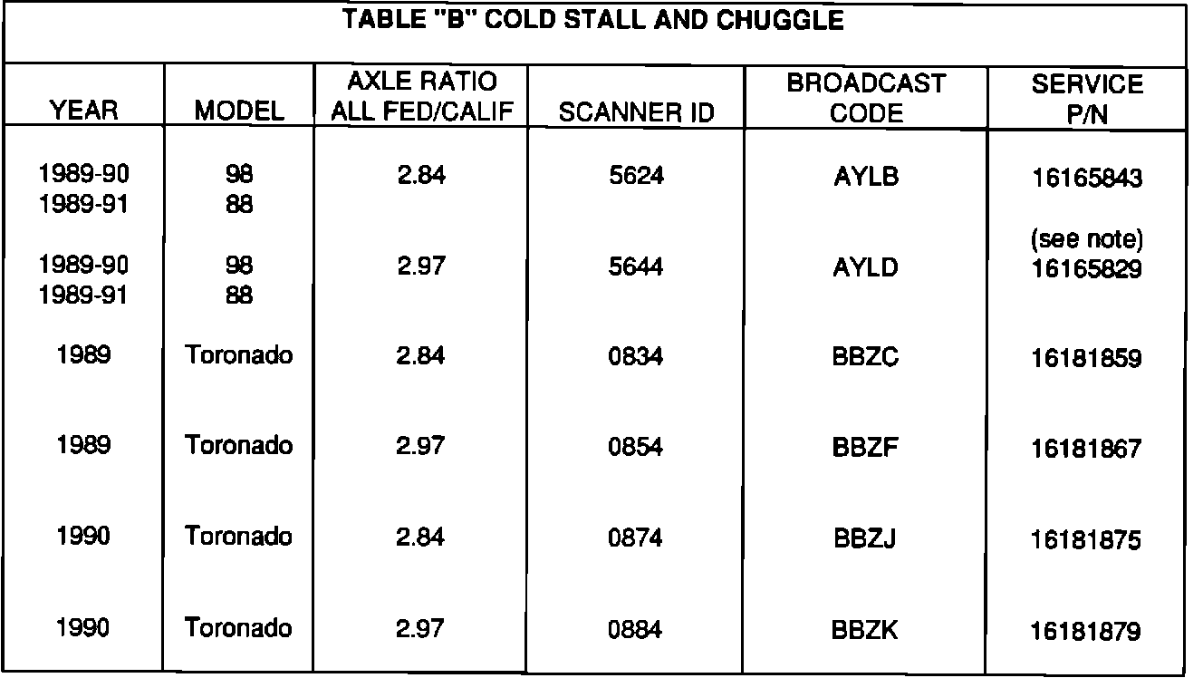 Some 1991 Eighty Eights with a 2.84 axle ratio and Federal emissions package had a PROM released that used Scanner ID 5644 but had a broadcast code of AWJD. This should not be confused with 16165829 PROM which uses Scanner ID 5644 for a 2.97 axle ratio. DO NOT rely on the Scanner ID to determine which PROM is in a vehicle. Look at the broadcast code on the PROM to be sure.