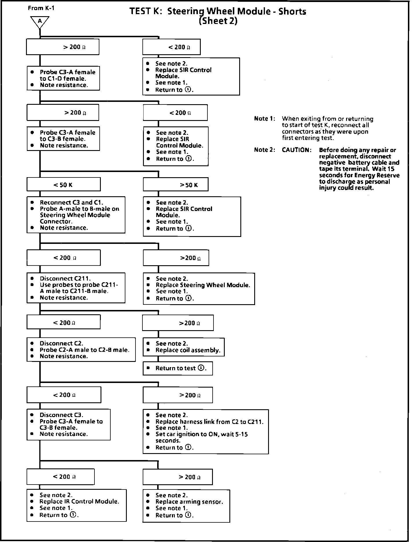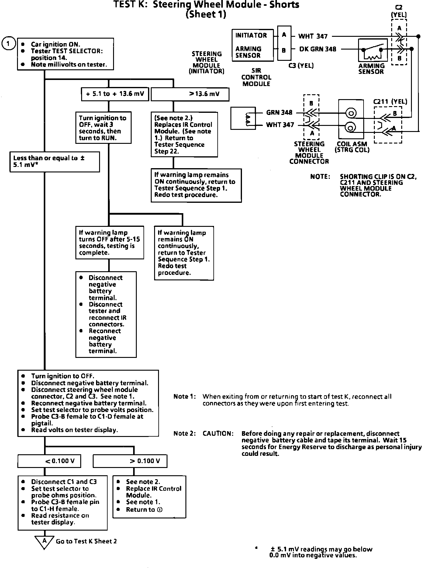 Fig. 288 Test K, Steering Wheel Module Shorts (Part 1 Of 2):