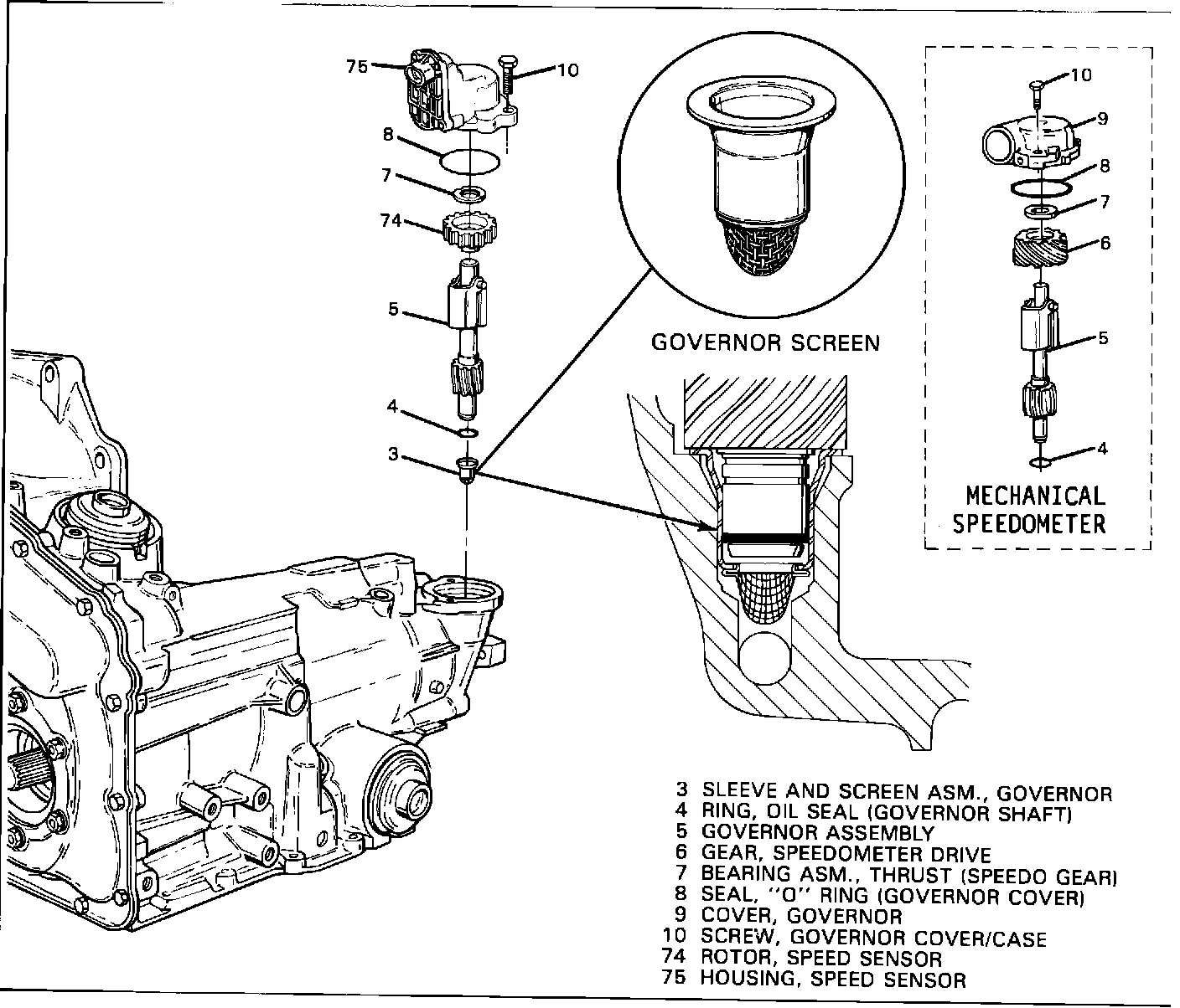 A new Governor Screen (3) was added to the Governor Shaft Sleeve in the Case. The Governor Screen will minimize the potential of sediment entering the Governor Assembly and preventing the Governor Balls from seating properly.
