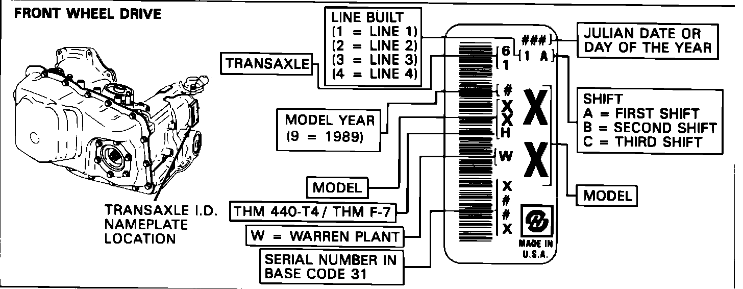 Figure 1 - THM 440-T4 (HYDRA-MATIC 4T60) Transaxle Identification Information: