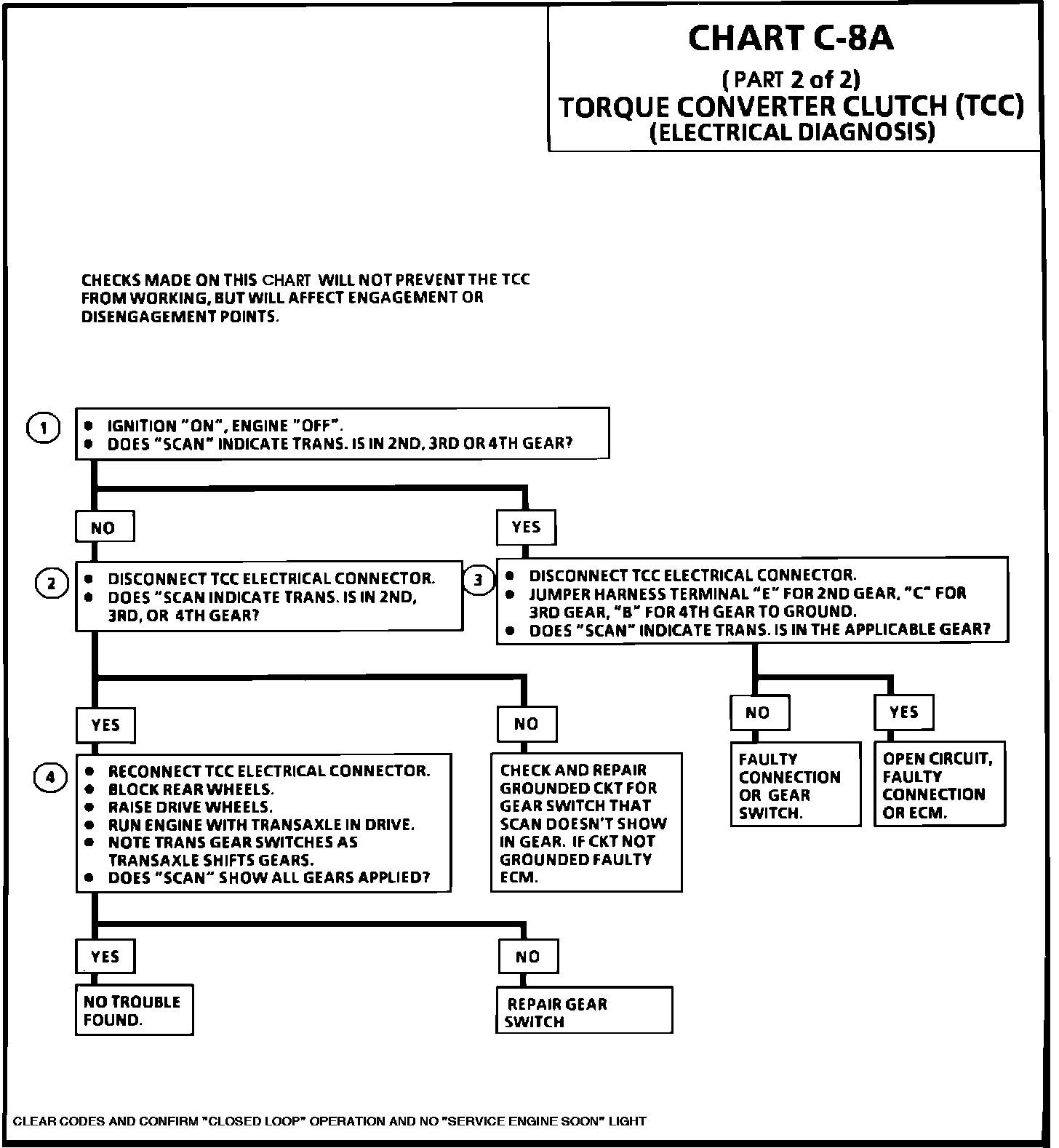 If vehicle is road tested because of a TCC related problem, be sure the switch states do not change while in 4th gear because the TCC will disengage. If switches change state, carefully check wire routing and connections.
