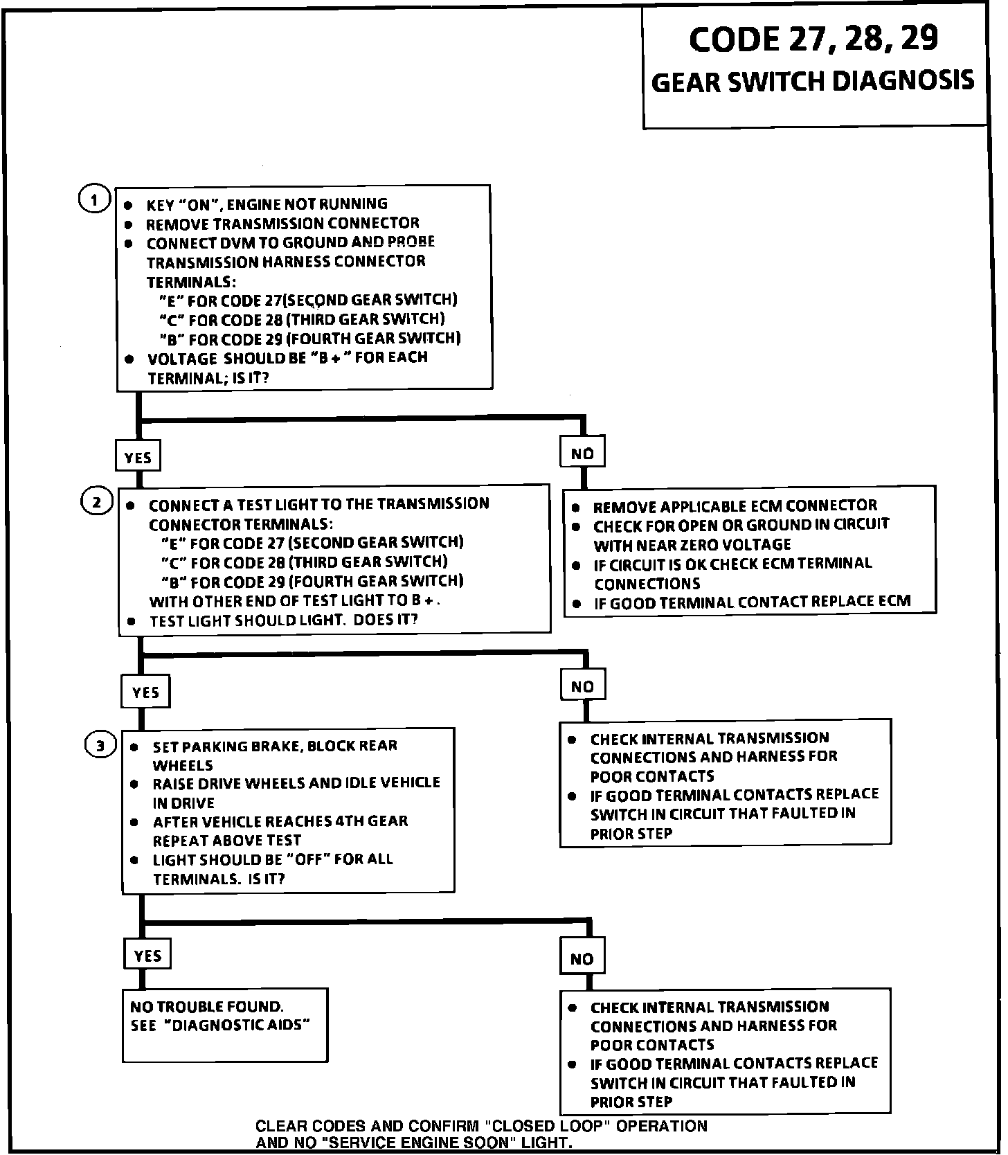 3. Checks for a good, properly operating switch and cheeks CKT within transaxle for an improper ground.