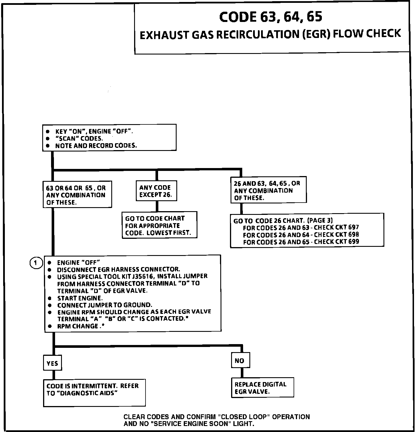 Codes 63, 64, and 65 are EGR flow test failures. The ECM on a closed throttle coast down will cycle the solenoids "ON" and "OFF" individually and look for a resulting change in engine rpm and O2 sensor activity.