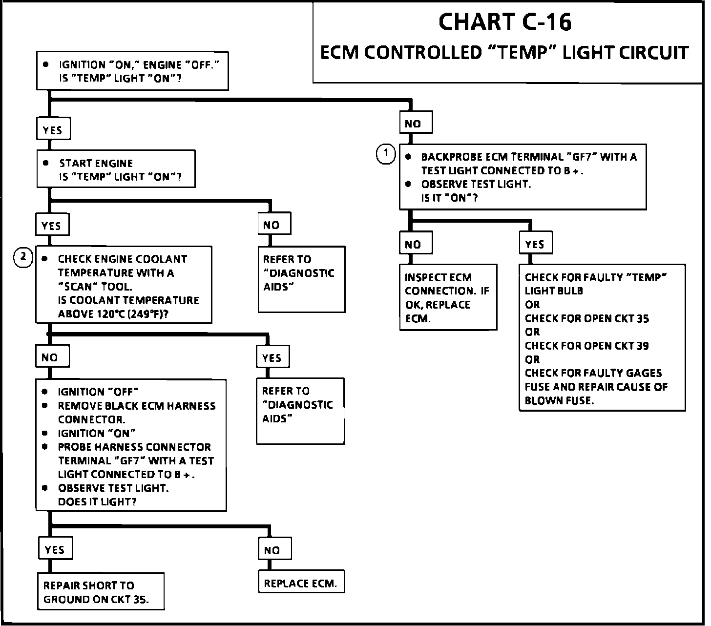 1. With the ignition "ON" and engine "OFF," the ECM should be grounding circuit 35.