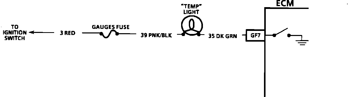 The TEMP light is connected to battery voltage through the ignition switch. The ECM illuminates the bulb by supplying a path to ground through quad-driver module #2.