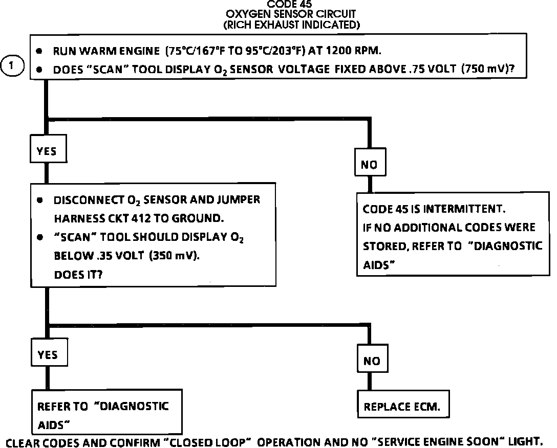 The Code 45 or rich exhaust is most likely caused by one of the following: