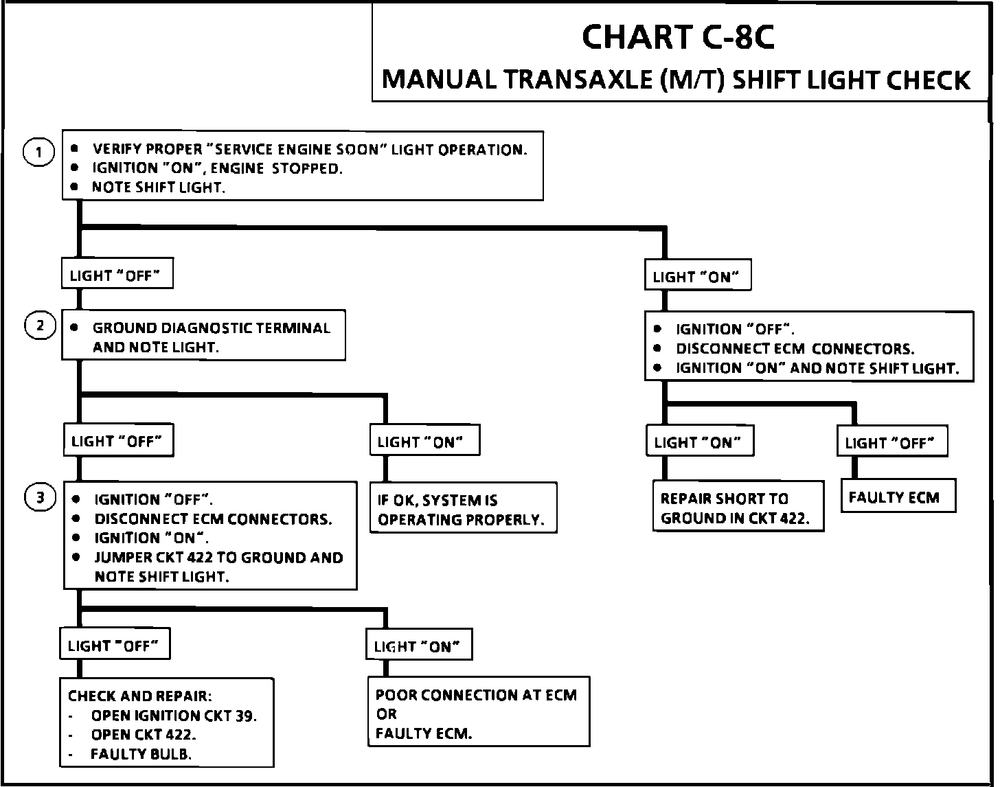 2. When the diagnostic terminal is grounded, the ECM should ground CKT 422 and the shift light should come "ON".