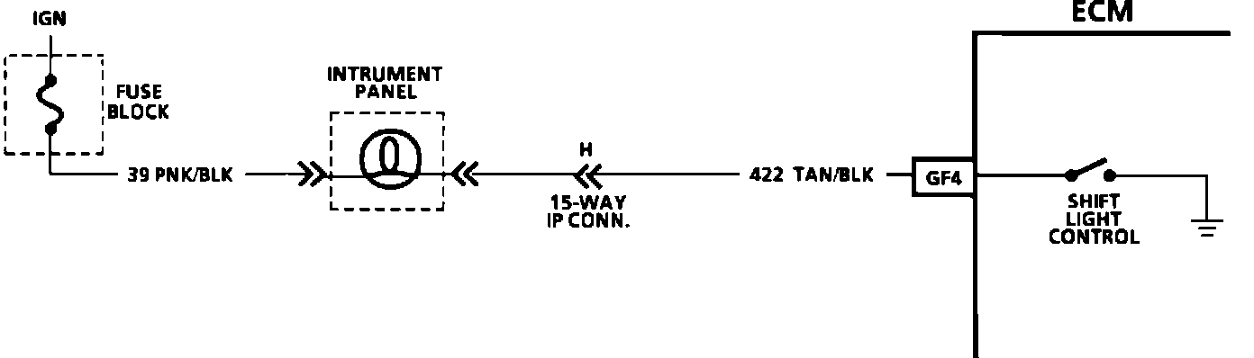 1. This should not turn "ON" the shift light. If the light is "ON," there is a short to ground in CKT 422 wiring or a fault in the ECM.