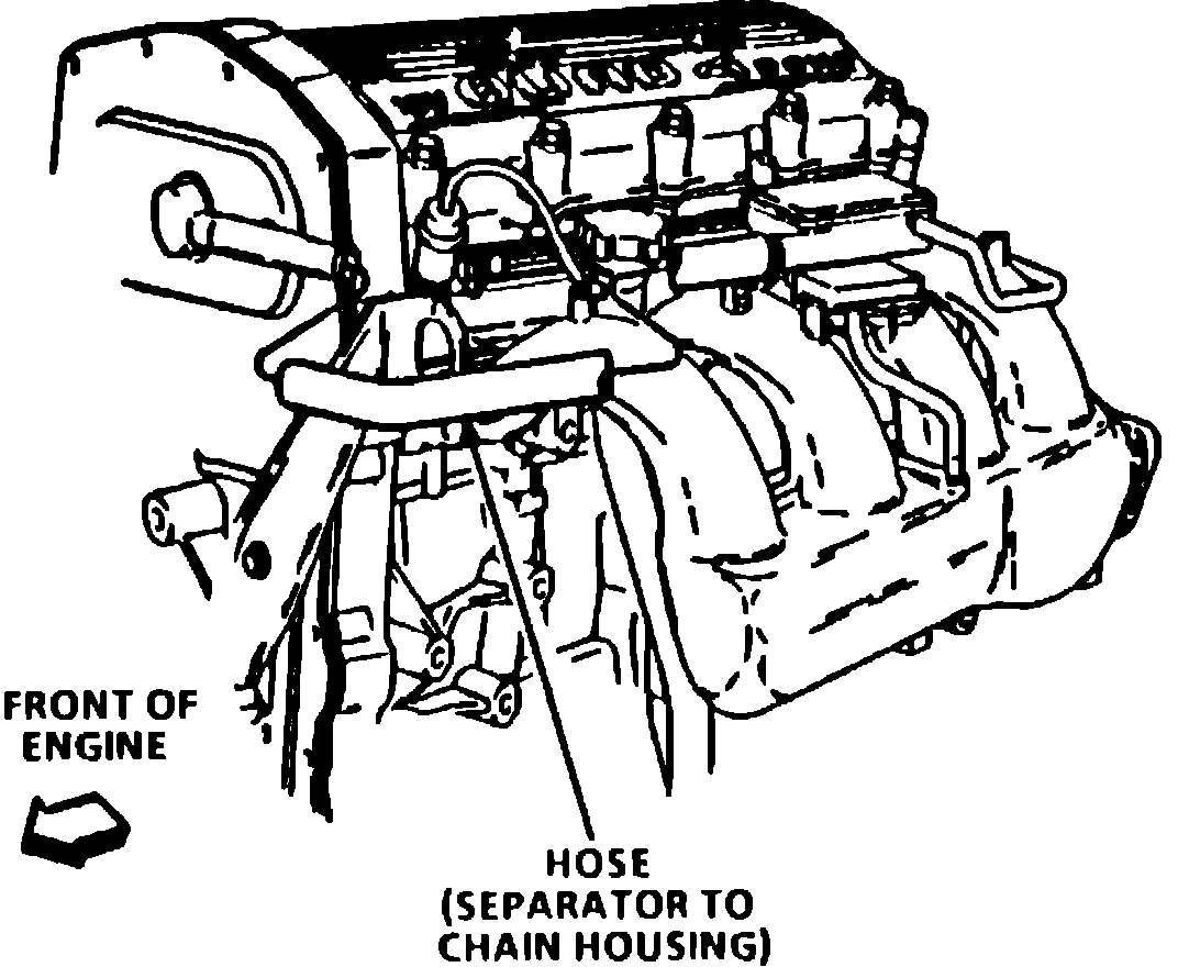 If oil sludging or leaks are noted, verify that the CV oil/air separator is not plugged. This may be done by verifying that the smaller nipple can have air blown through or check that a 1.52mm or .060" plug gauge will fit into the orfice inside the nipple. If plugged, replace the CV oil/air separator assembly.