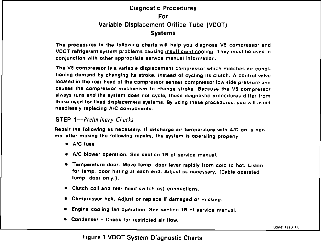SERVICE MANUAL UPDATE - SECTION 1B AIR CONDITIONING VDOT DIAGNOSIS CHARTS (NEW CHARTS)