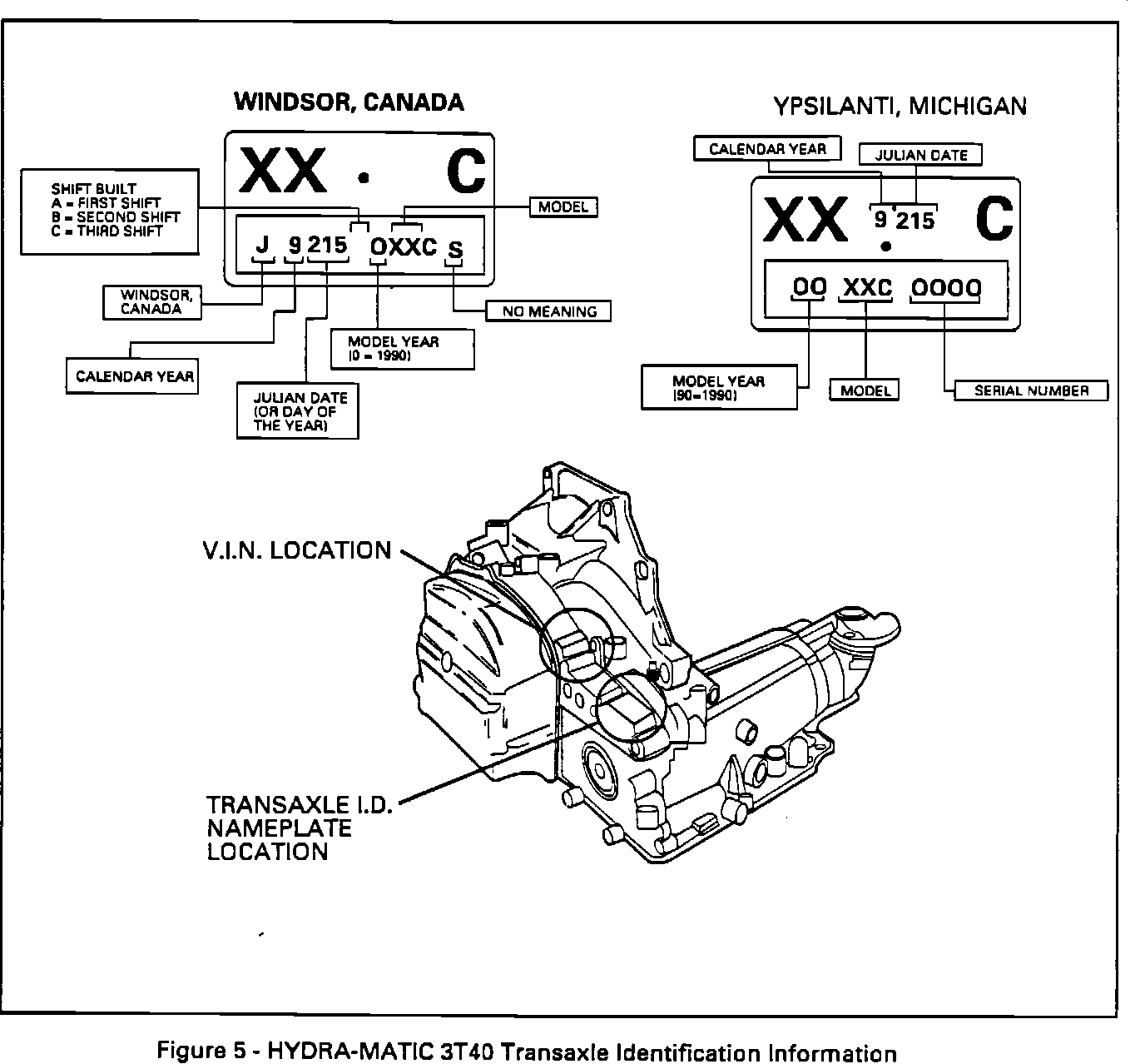 The new 3rd clutch fluid switch, control valve assembly, auxiliary valve body and gasket went into production for OBUC, OBYC, OBZC HYDRA-MATIC 3T40 (THM 125C) transaxles Start of Production 1990.