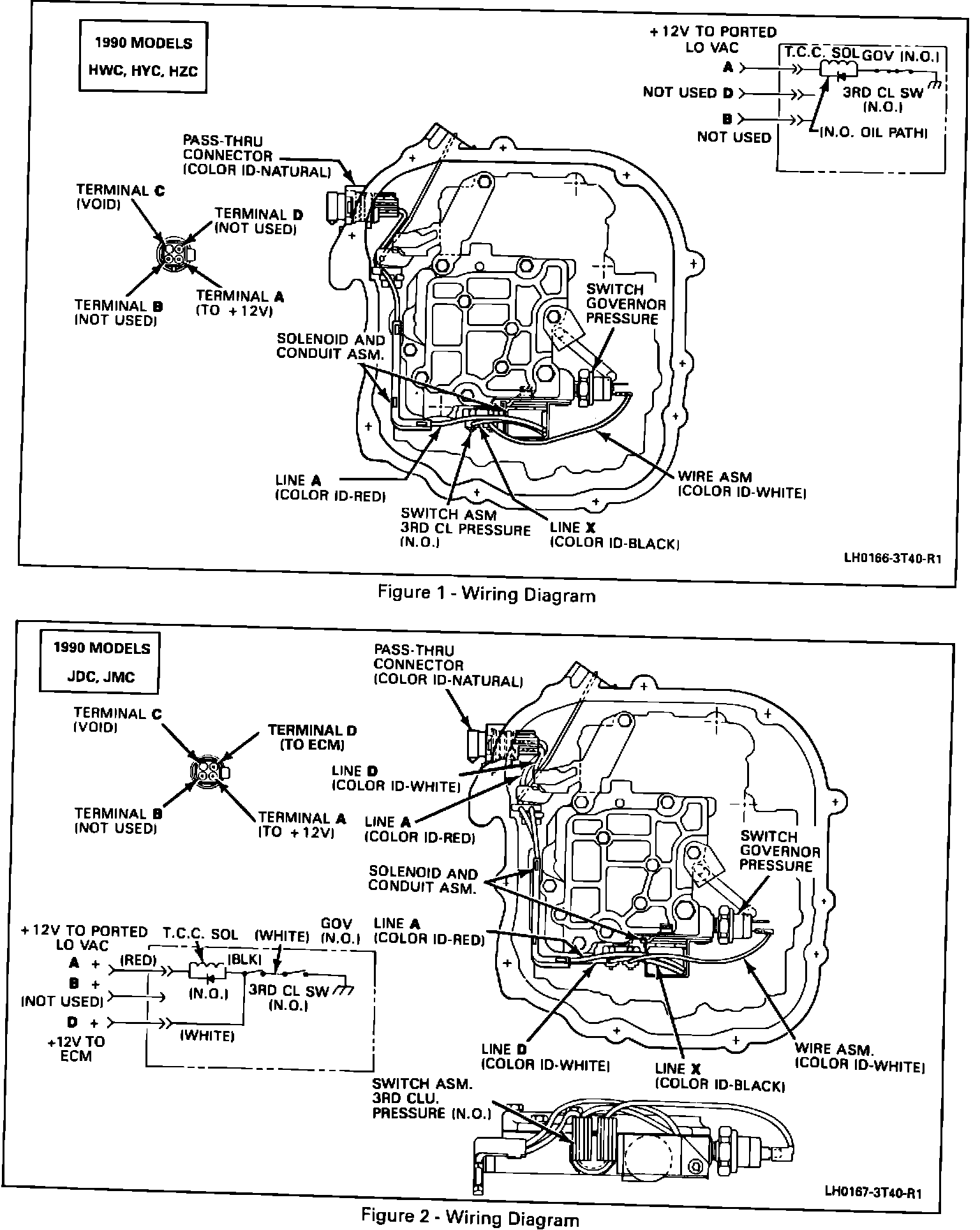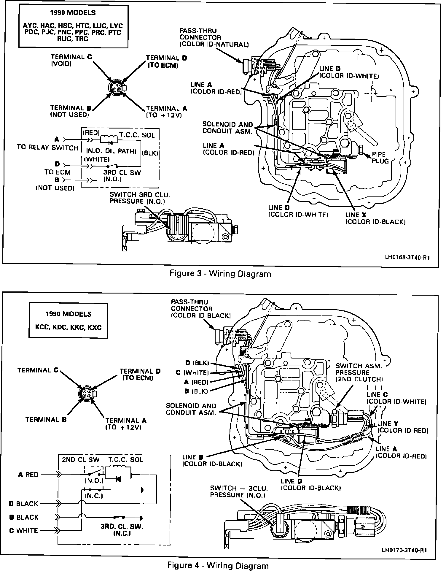 Revised Wiring Diagram Information and eight 1990 HYDRA-MATIC 3T40 models added after the printing of the 1990 Service Manuals. See Figures 1 through 6.