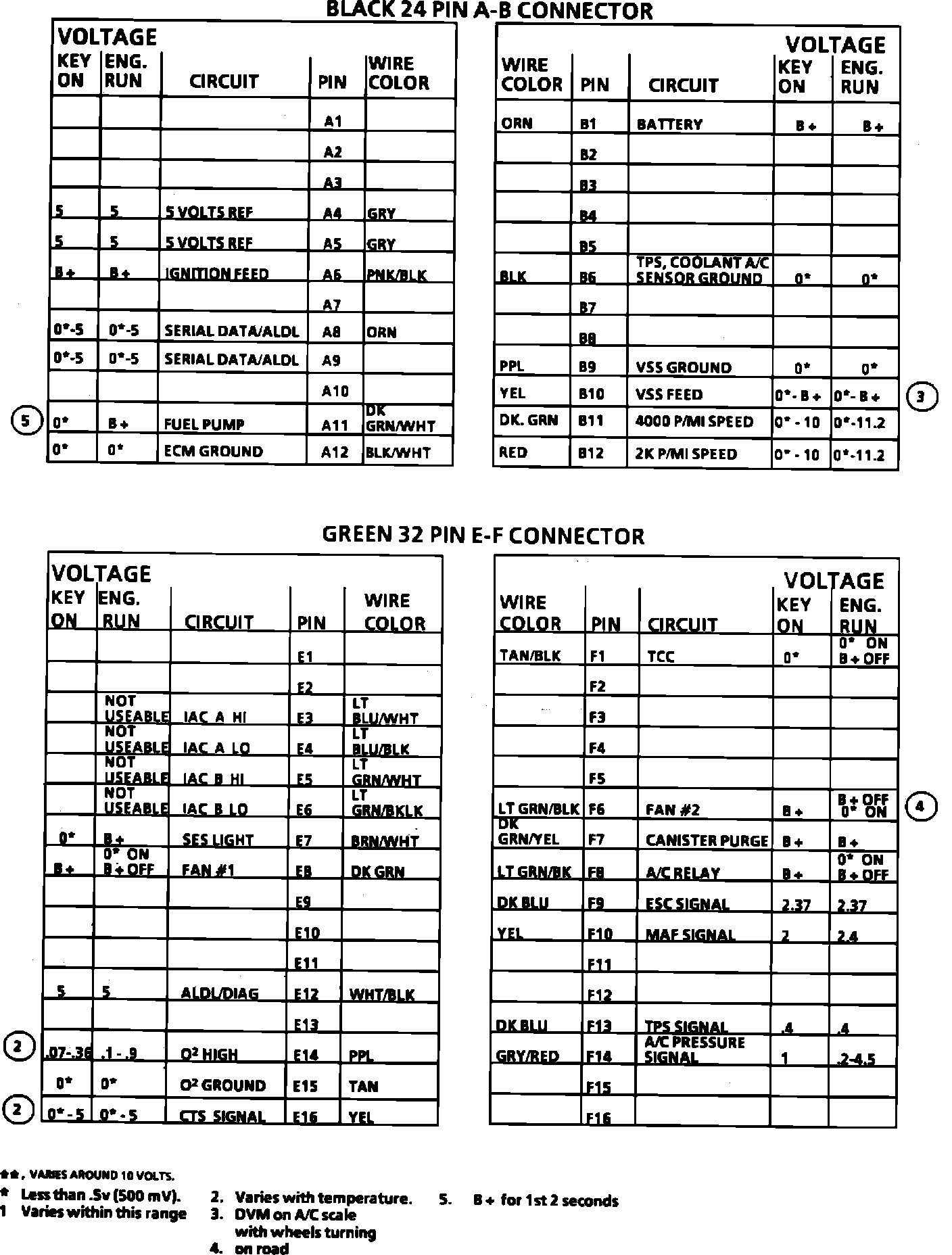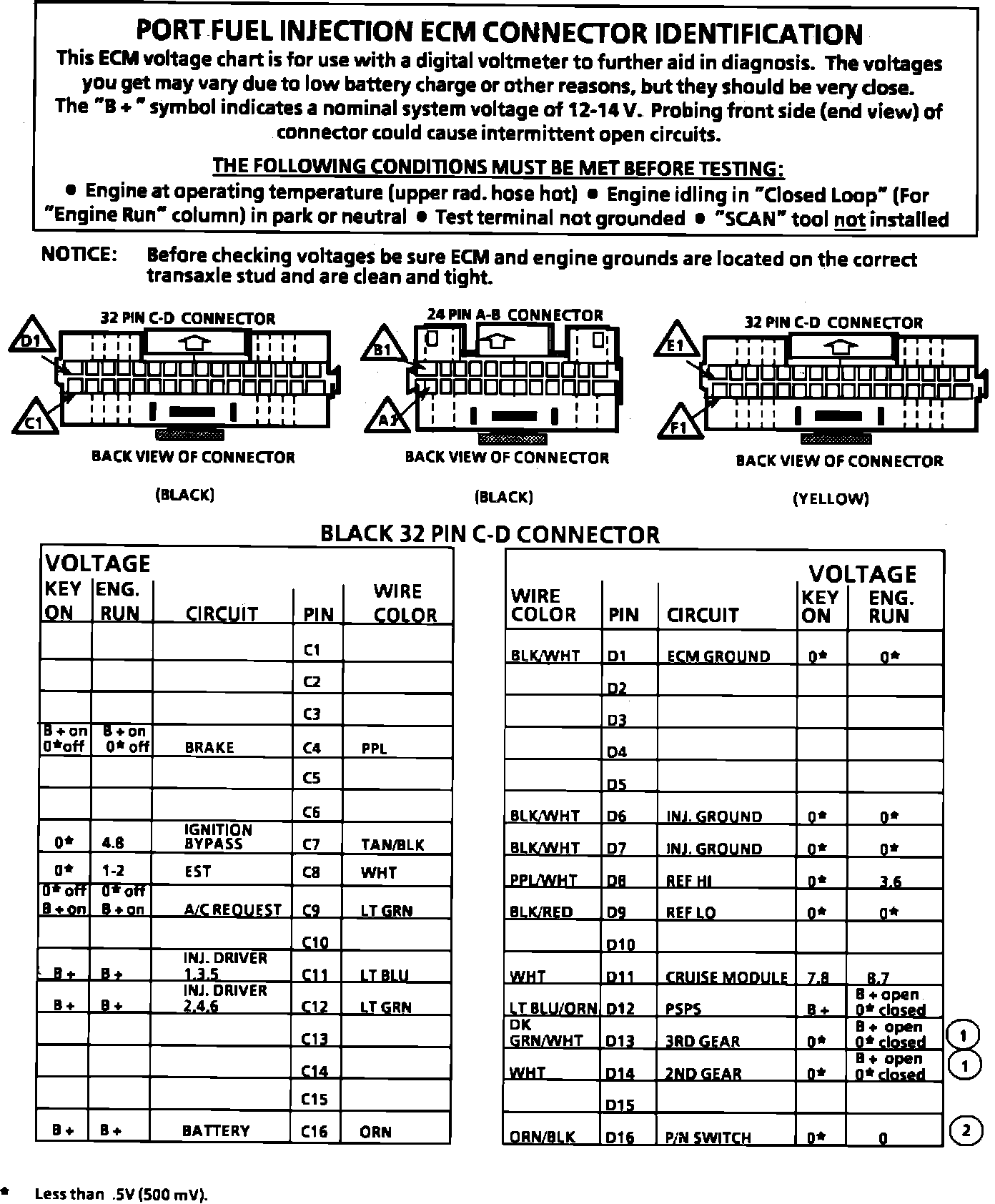 ECM Connector Terminal Identification And Voltage Specification (Part 1 Of 2):