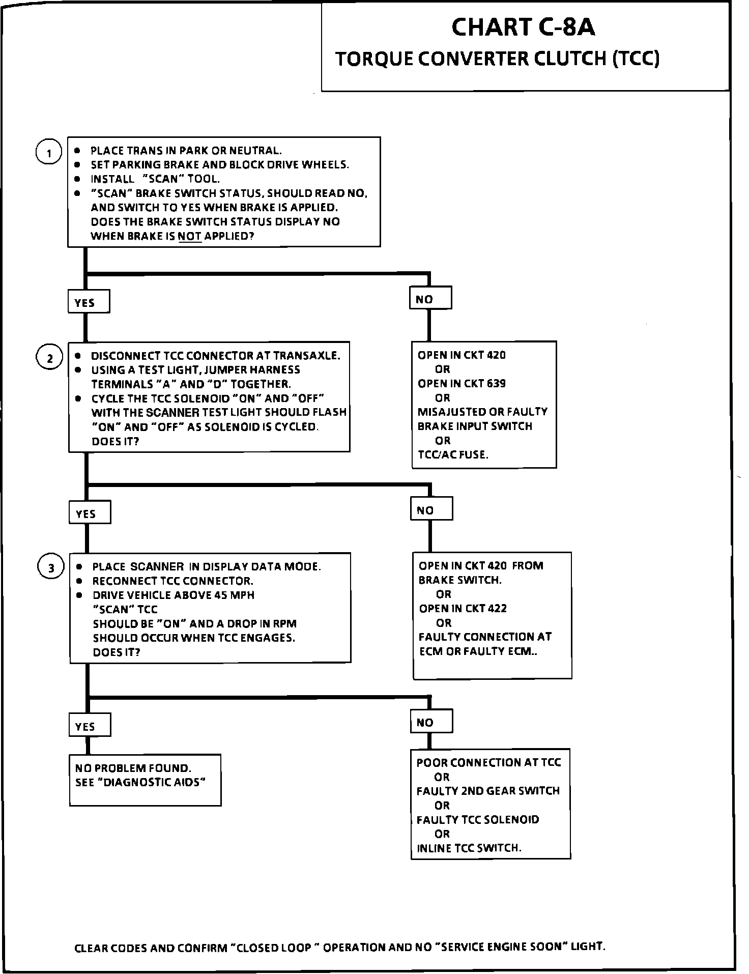 1. Checks TCC/AC fuse and brake switch.