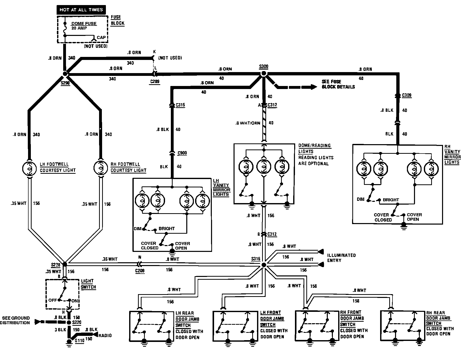 Interior Lamps. Courtesy, Dome, Reading & Vanity Mirror:
