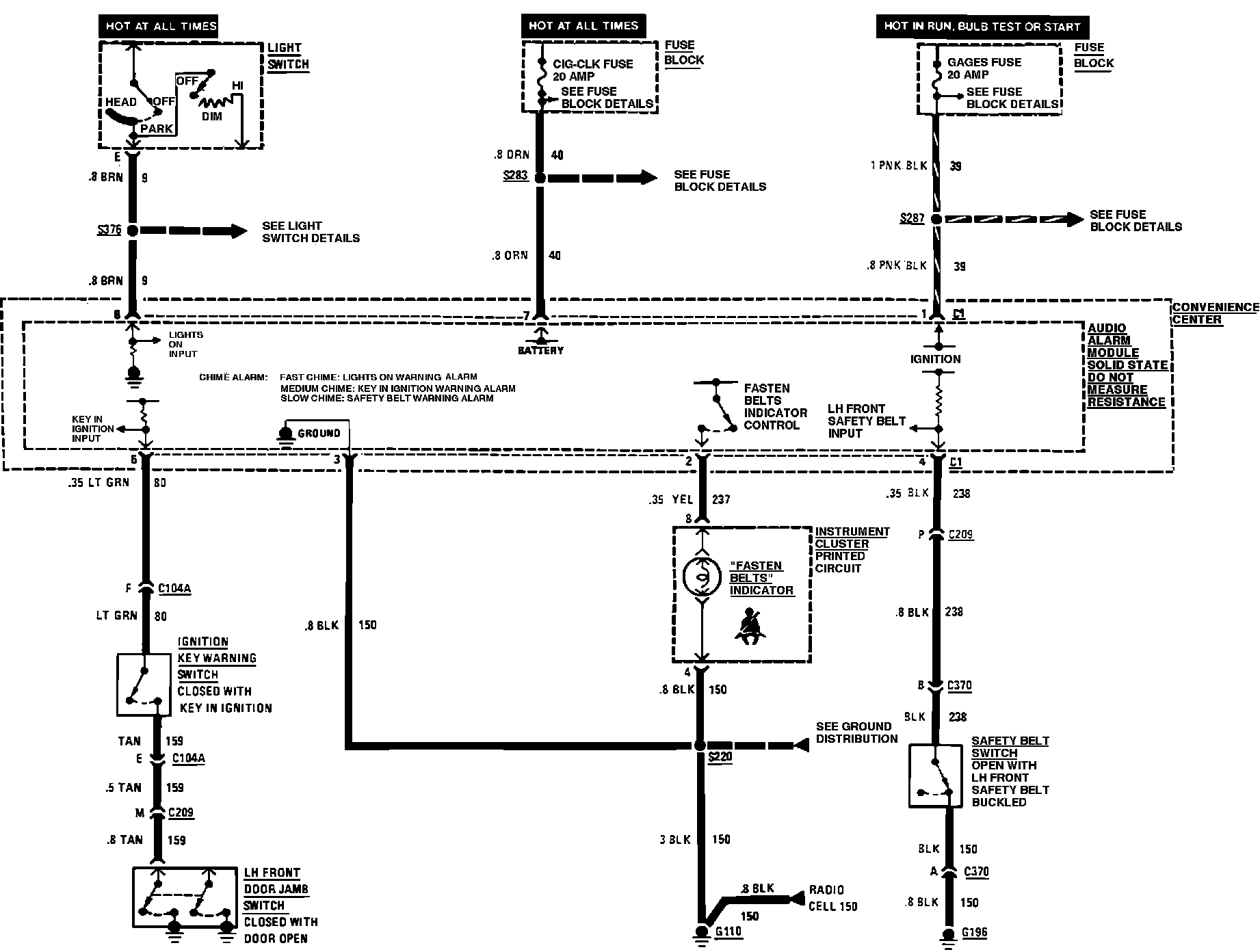 Warning/Indicators. Fasten Seat Belts, Key In & Lights On:
