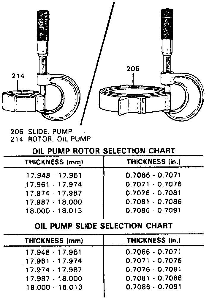 b. Using measurements obtained, for service replacement parts. Replacement parts will provide the same clearance as the original oil pump assembly.