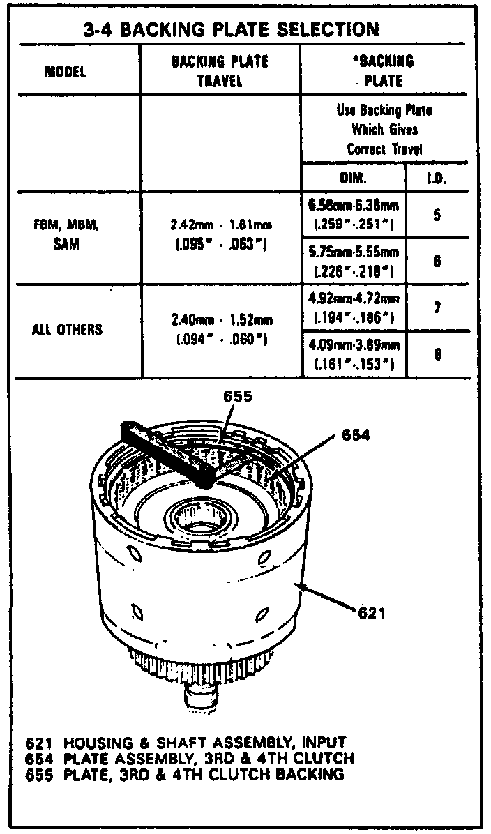 1. Check end clearance between the backing plate and first composition plate with a feeler gauge. The measurement must be taken between the 3rd and 4th clutch plate assembly and the 3rd and 4th clutch backing plate.