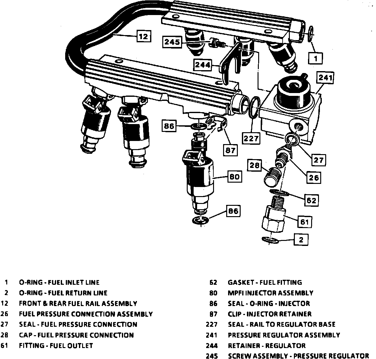 Fuel Rail Assembly Model R630 - Exploded View:
