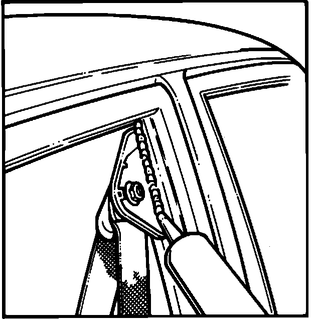Some early 1990 Cutlass Ciera Models may exhibit a windnoise condition at the rear upper corner of the front door frame. The condition may be due to the glass run channel not being sealed to the door frame at the upper seat belt attaching point, and may be repaired by using the following procedure: