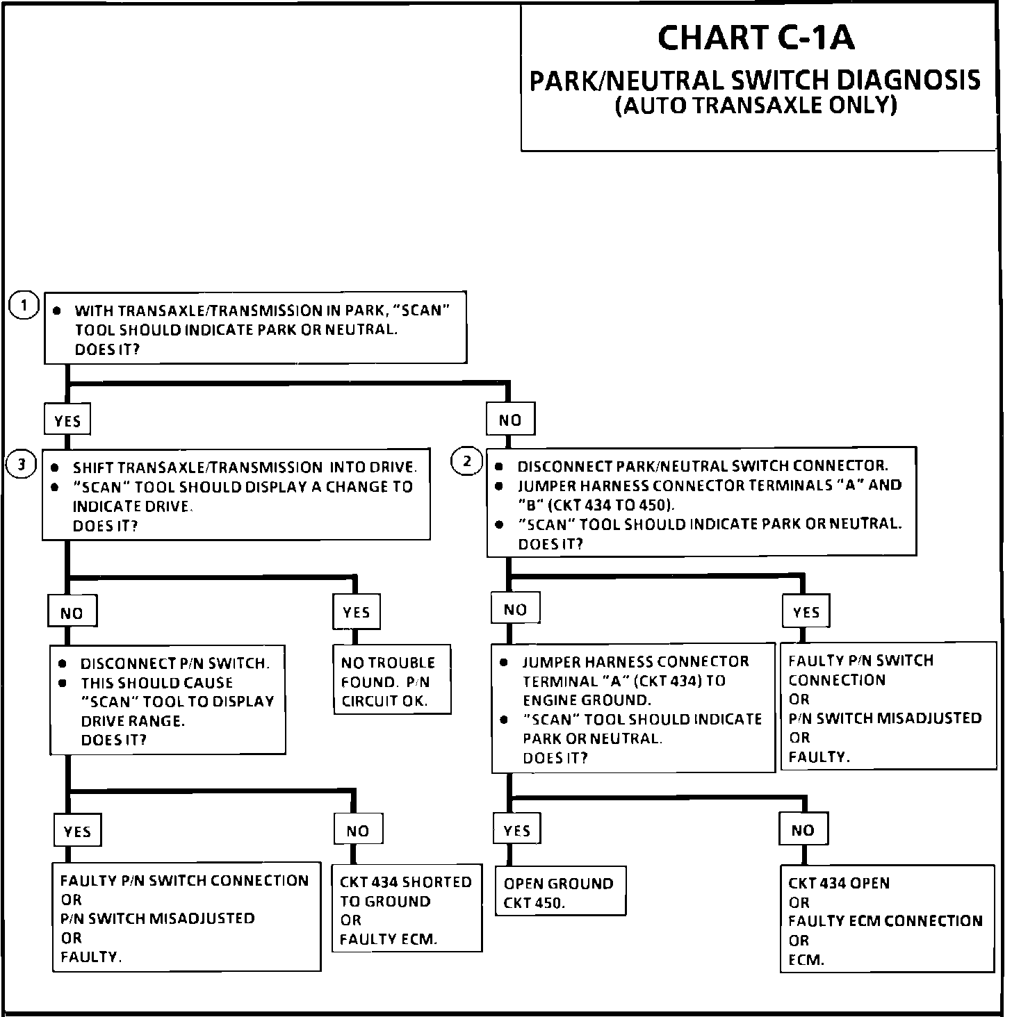 1. Checks for a closed switch to ground in park position. Different makes of "Scan" tools will read P/N differently. Refer to operators manual for type of display used for a specific tool.