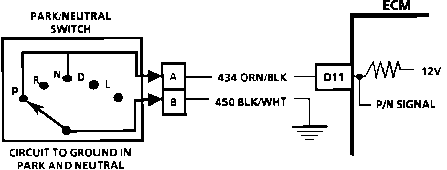 The Park/Neutral Switch contacts are a part of the Neutral Start Switch and are closed to ground in park or neutral and open in drive ranges and reverse.