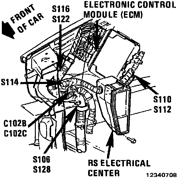 RH Front Of Engine Compartment: