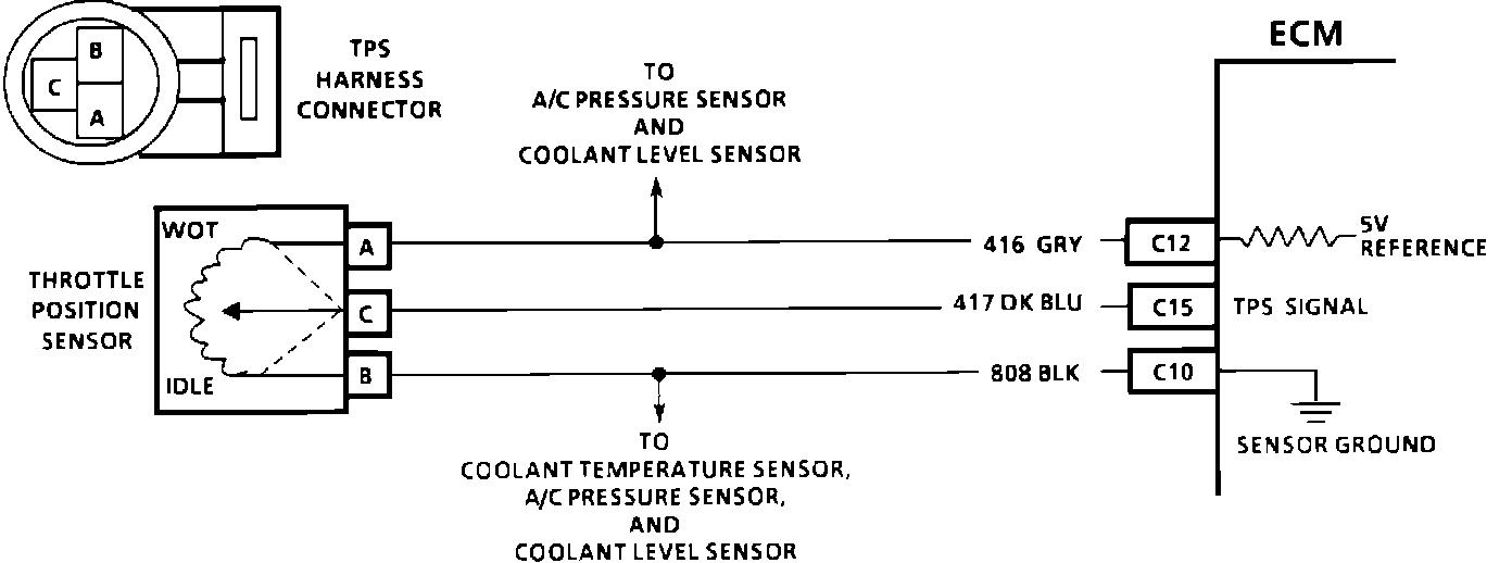 2. With the TPS disconnected, the TPS voltage should go low if the ECM and wiring are OK.