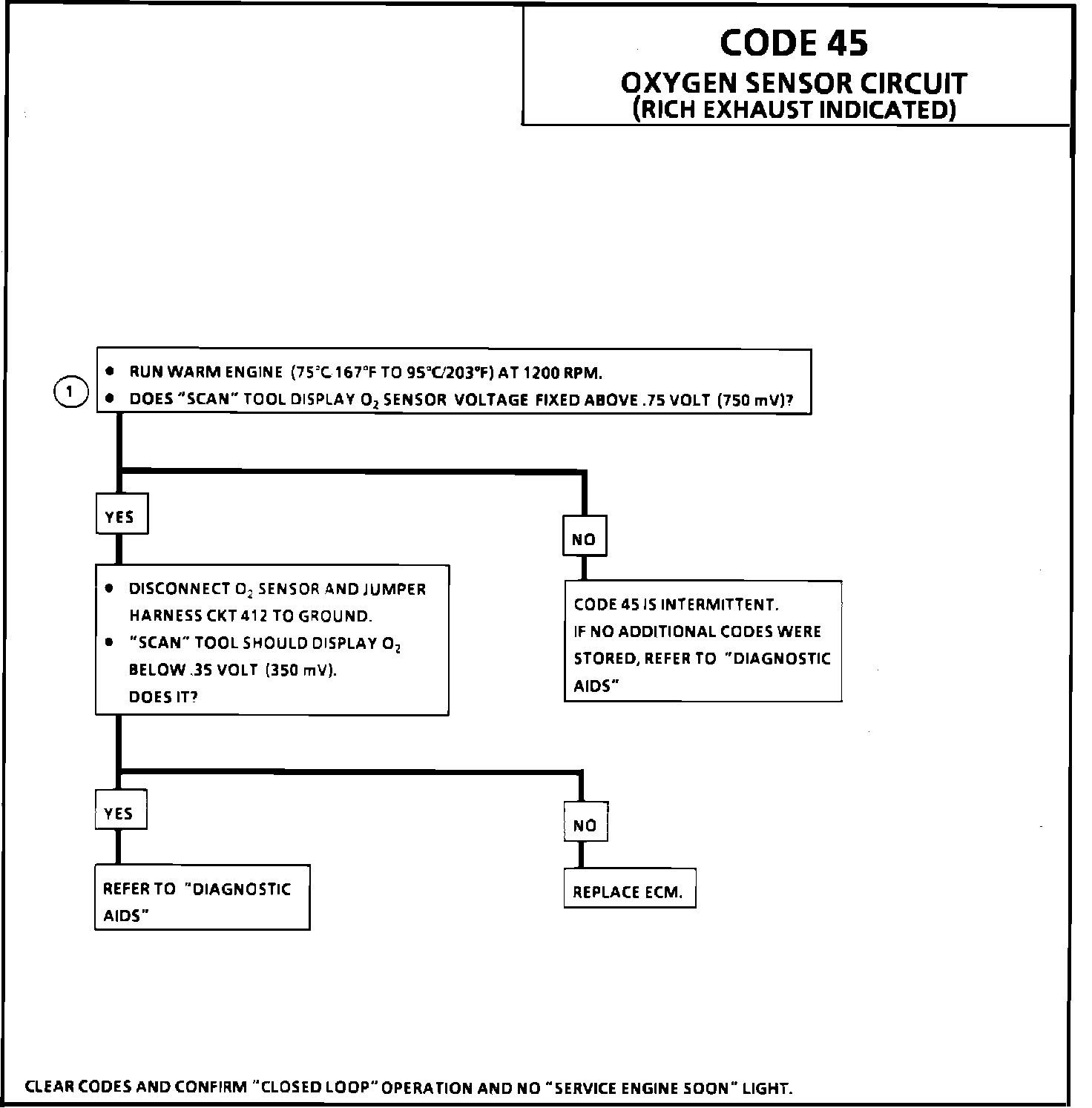 The Code 45 or rich exhaust is most likely caused by one of the following: