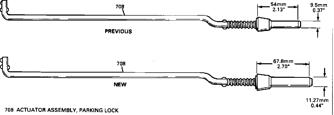 - The parking lock actuator assembly "bullet" is now 1.77 mm (0.070") wider. The overall length of the new assembly is now 13.8 mm (0.543") longer than the previous assembly. (Figure 2)