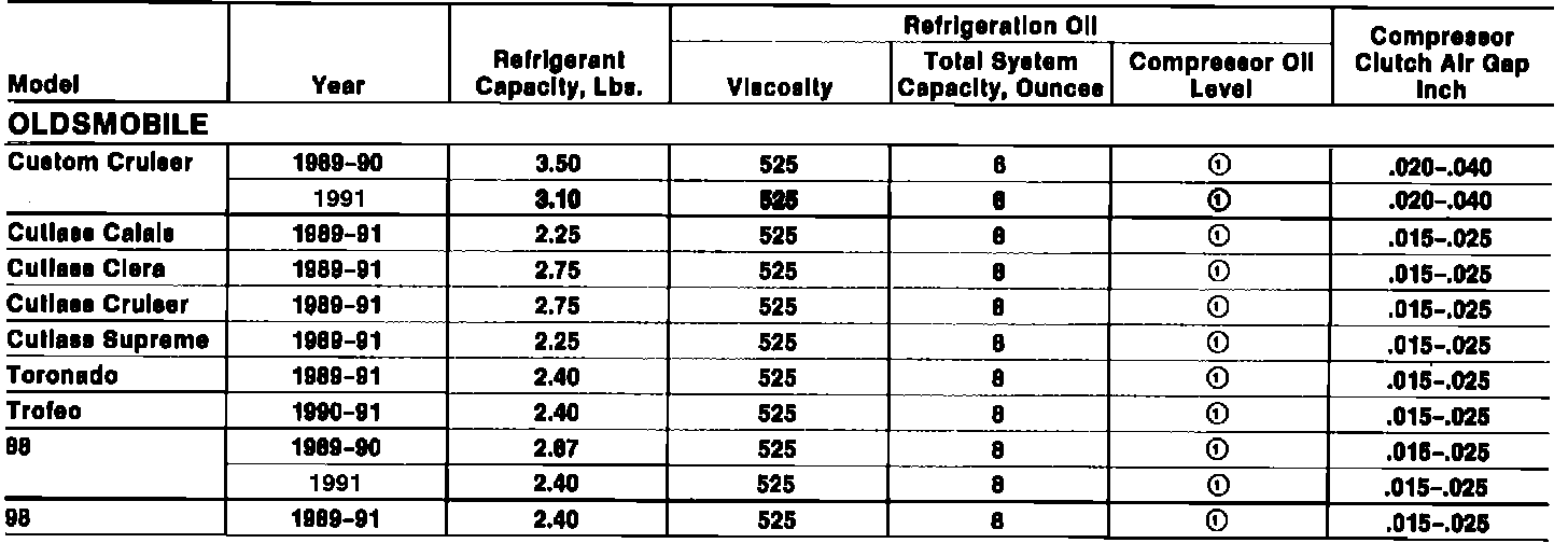 A/C Data Table: