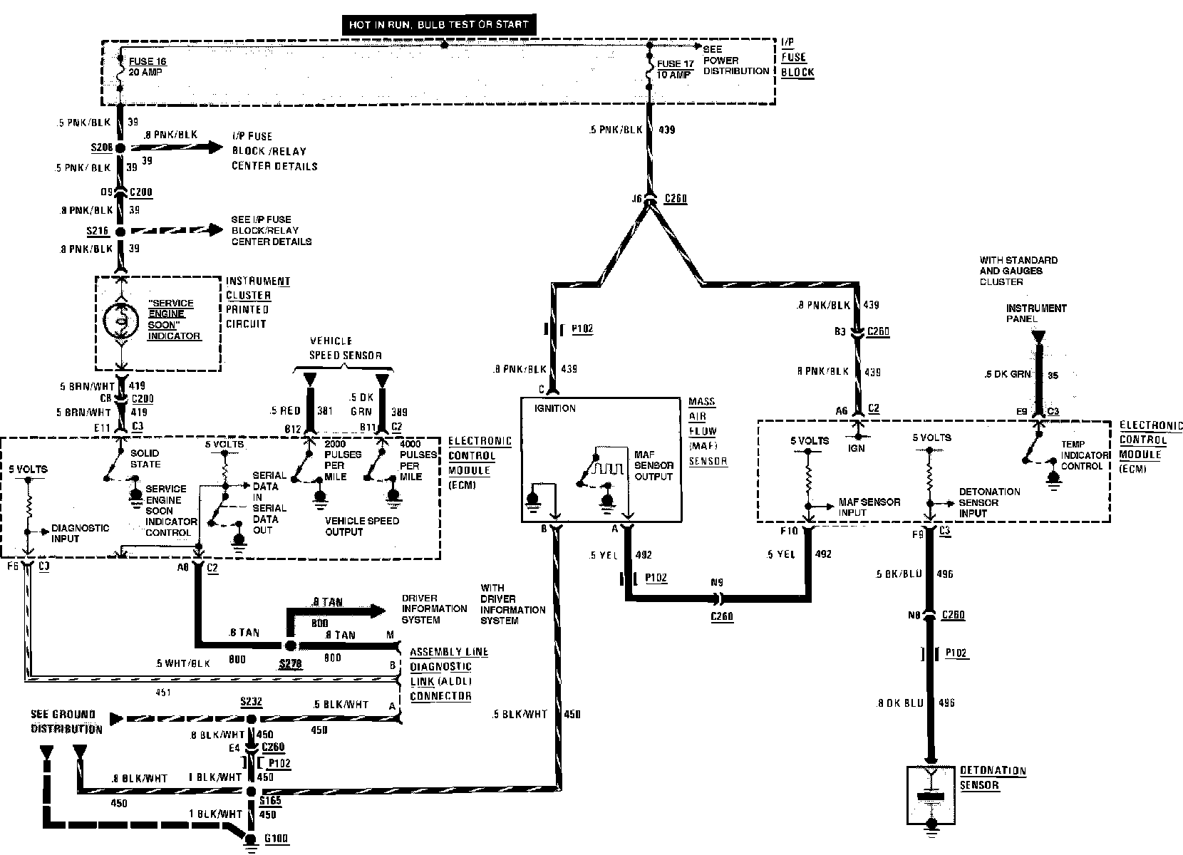 Sequential Fuel Injection. "Service Engine Soon" Indicator, Mass Air Flow Sensor, Detonation Sensor & Data Line: