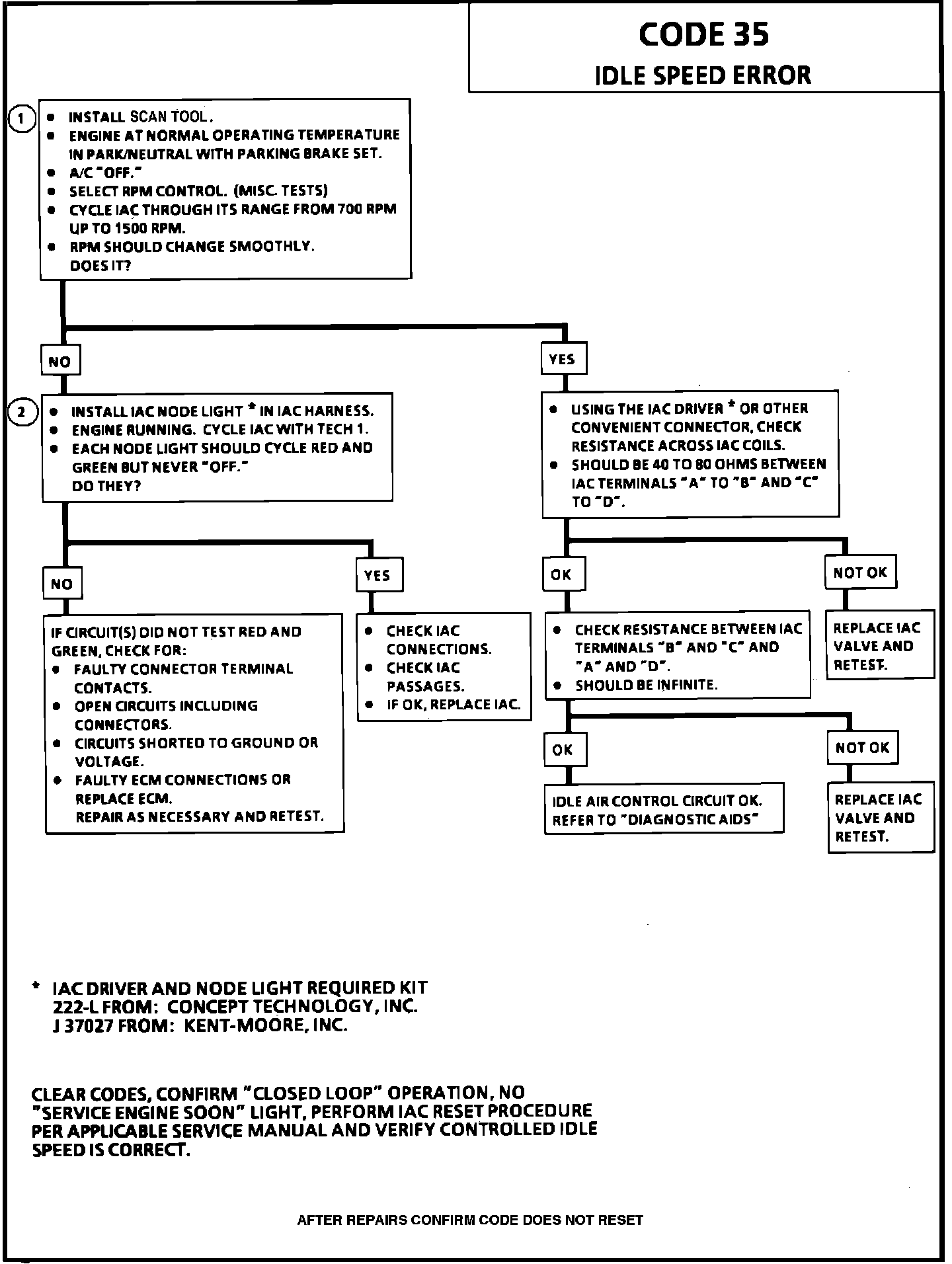 ^ An IAC valve which is stopped and cannot respond to the ECM, a throttle stop screw which has been tampered with, or a damaged throttle body or linkage could cause Code 35. If no problem is found and Code 35 resets, replace ECM.