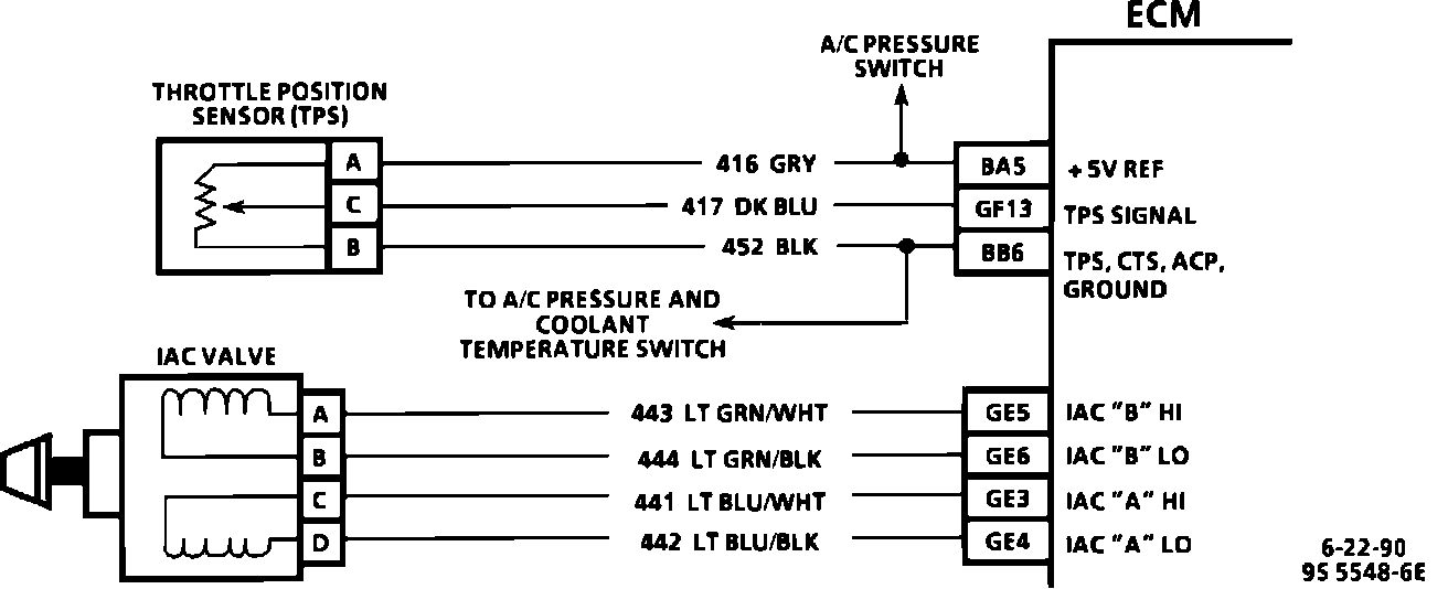 ^ Check for opens, shorts or poor connections to IAC valve in circuits 441, 442, 443, 444. This will result in improper idle control and may set a Code 35.