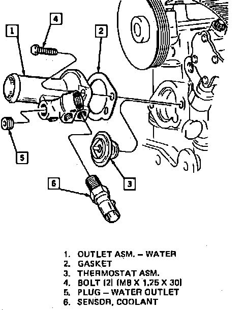 2. Thermostat housing and gasket.