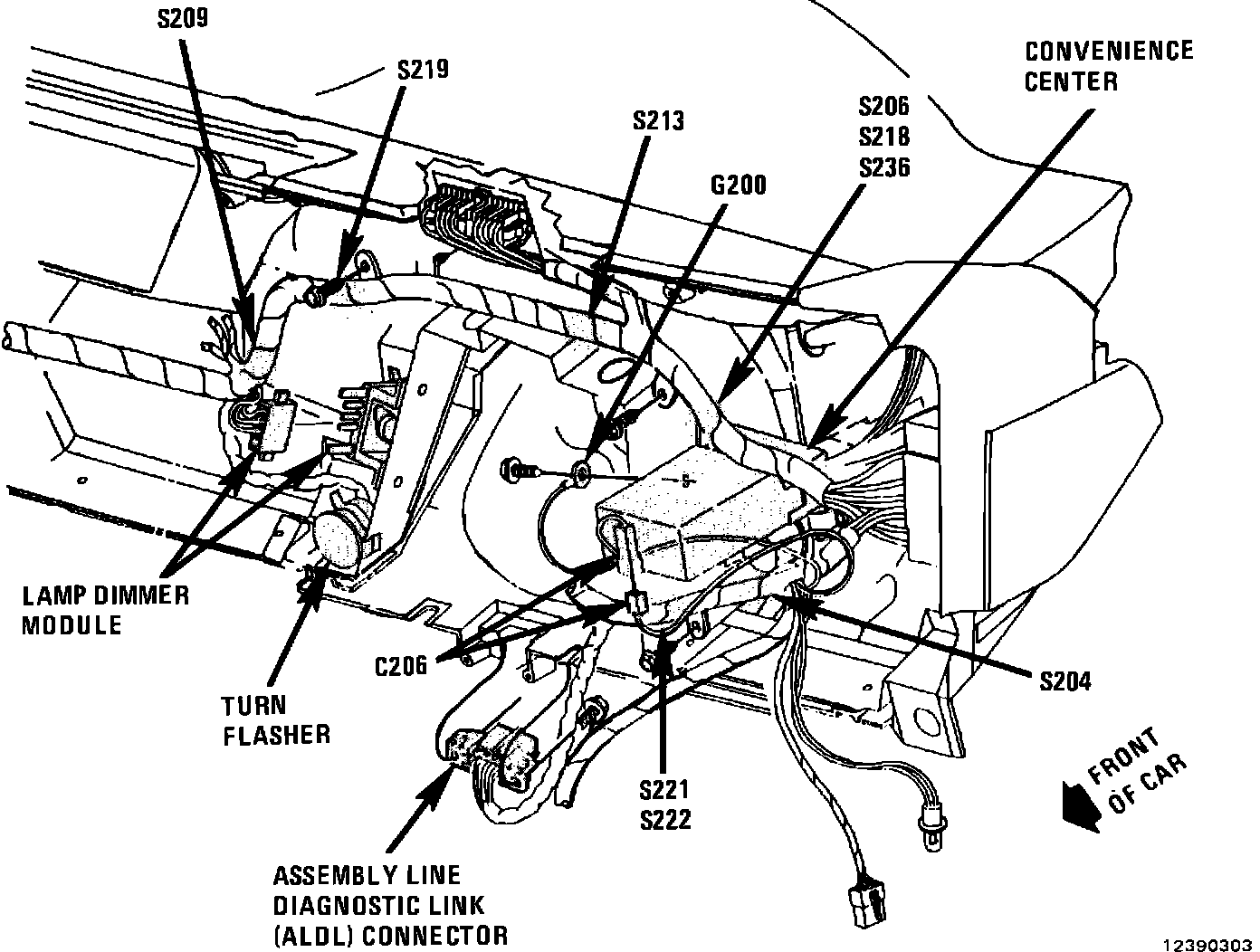 The turn signal flasher is located behind the instrument panel on the right hand side of the steering column bracket.