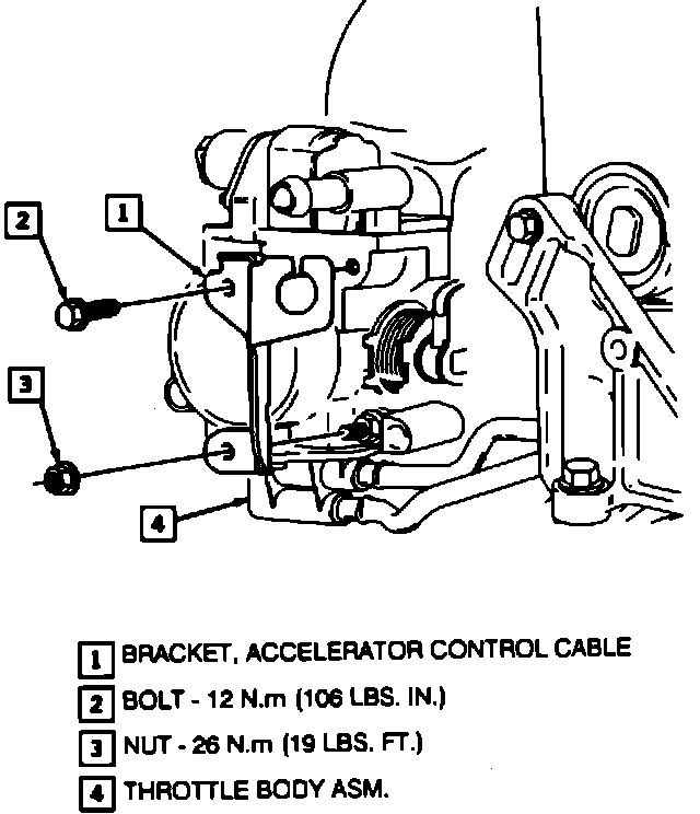 Accelerator Control Cable To Throttle Body Bracket And Lever: