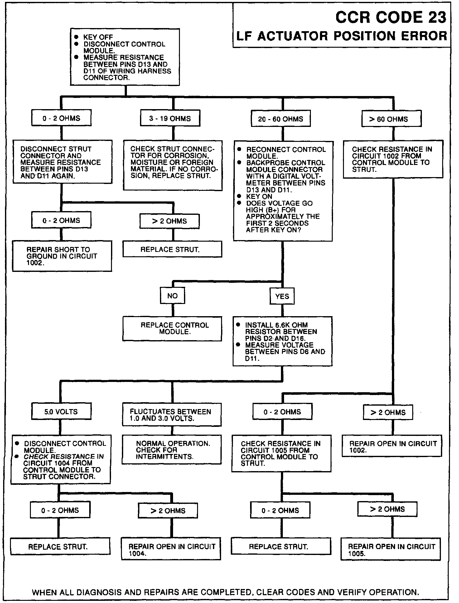 A mismatch of the commanded feedback signal and the actual feedback signal which occurs after the 6 seconds will not be detected as an error. The actuators will not be repositioned until the CCR system commands a new actuator position as a result of new speed/lateral accelerator switch/driver select switch inputs or a 3 minute retest.