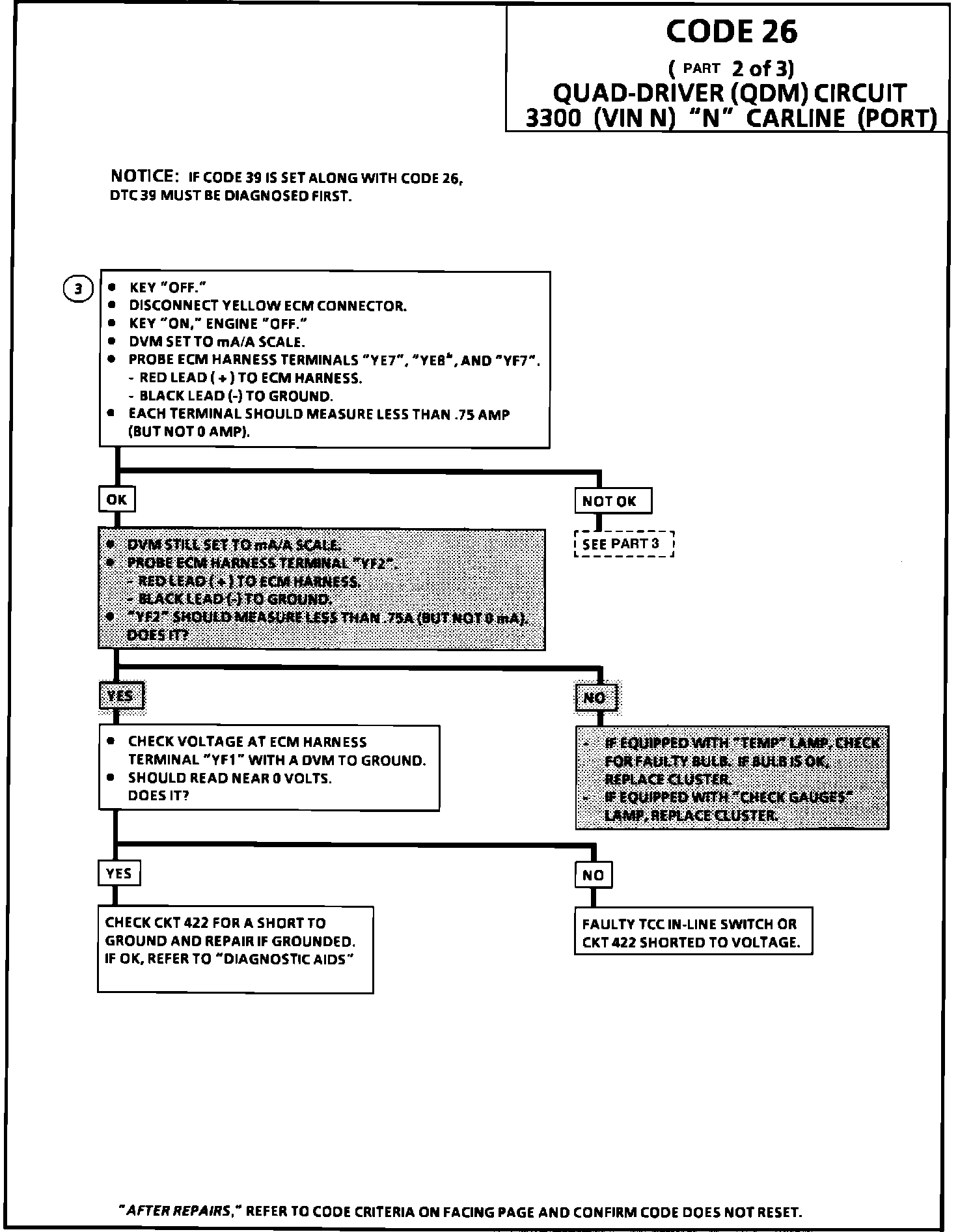 Code 26 will set when the ECM is commanding a QDM (A) controlled component "ON" and the voltage potential on the sense line is high, or if the component is commanded "OFF" and the voltage potential on the sense line is Low. QDM (B) will NOT set a Code 26.