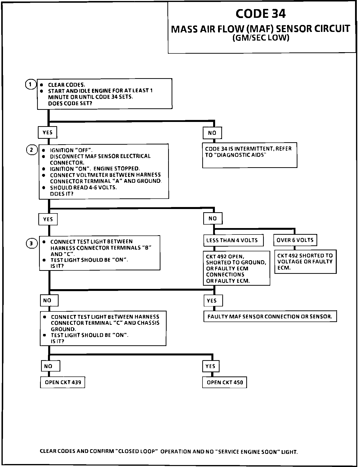 NOTE: If the MAF sensor frequency is to low a Code 34 will set, a substitute value for air flow is calculated based on engine rpm, TPS, and IAC valve position.