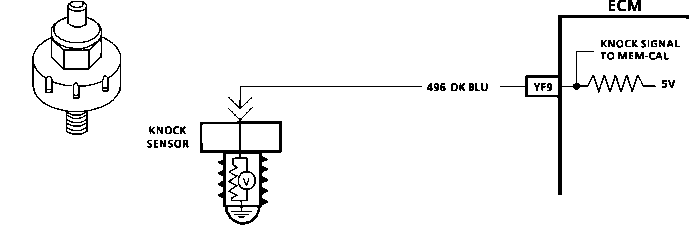 2. The ECM applies 5 volts to CKT 496, which should be present at the knock senor terminal.
