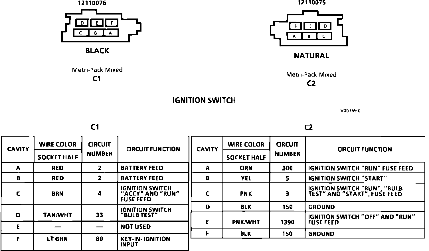 Ignition Switch Connector Face: