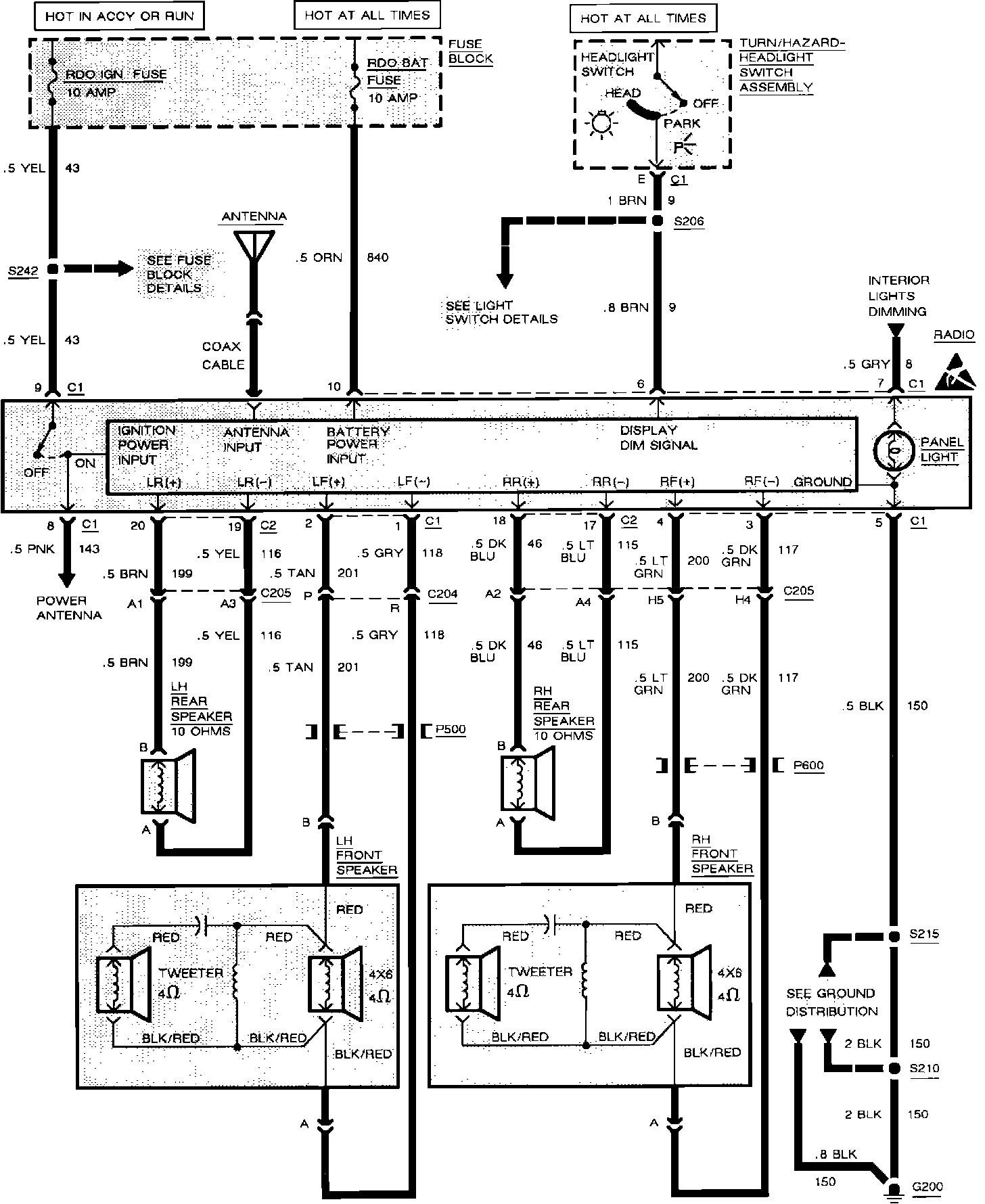 Radio/Audio Systems Wiring Circuit (6 Speakers):