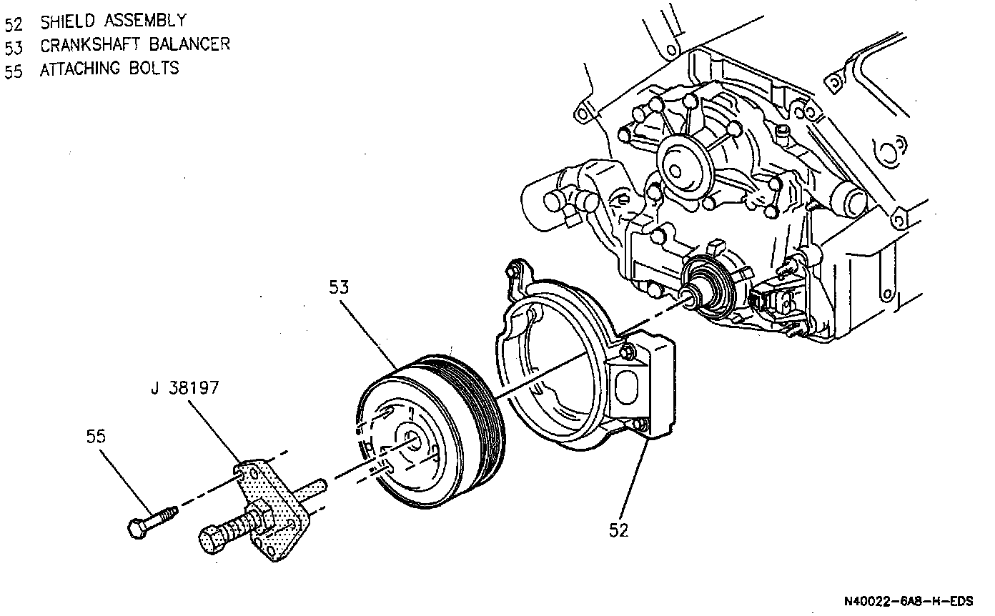 ^ The balancer is serviced as an assembly. Do not attempt to separate pulley from balancer hub.
