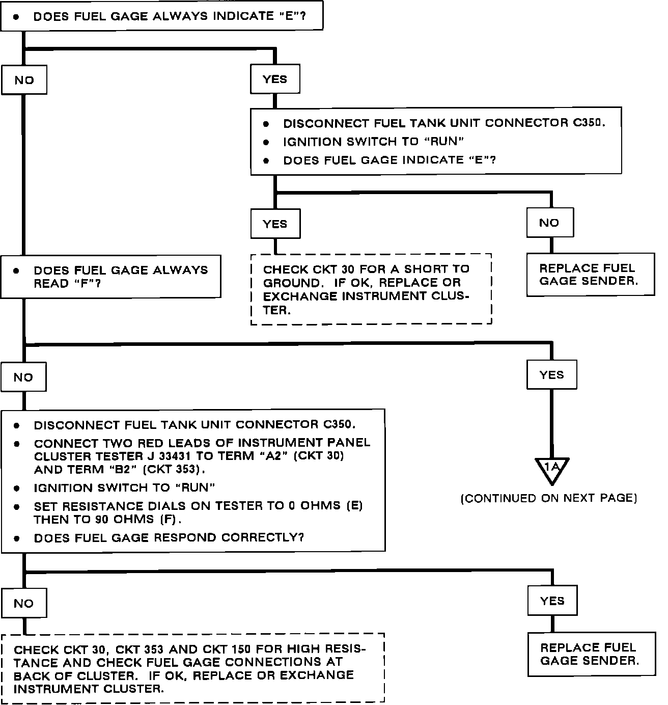 Chart #1 - Fuel Gage Does Not Operate Properly: