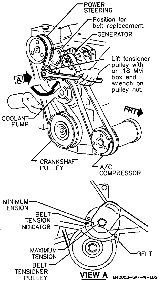 1. Inspect tensioner markings to see if the belt is within operating lengths. Replace belt if the belt is excessively worn or is outside of the tensioner's operating range.
